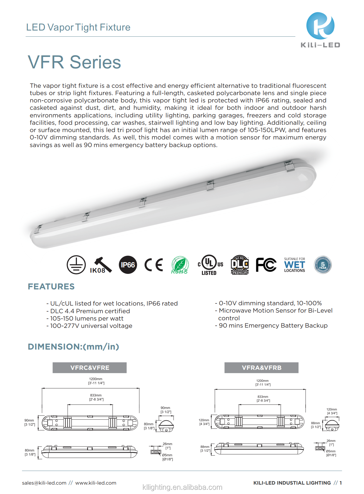Kili VFO-C Vapor Tight Fixture LED Triproof High Power led vapor tight fixture light
